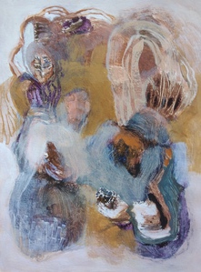Intiem klein werk, voornamelijk acryl op papier van 20x20 tot 30 x 40
